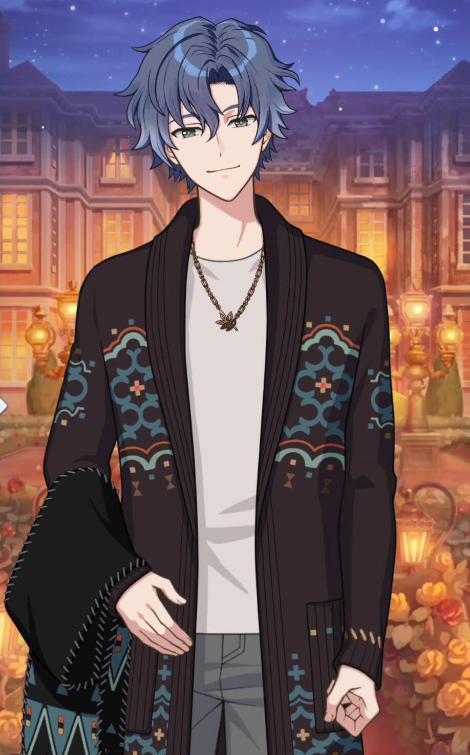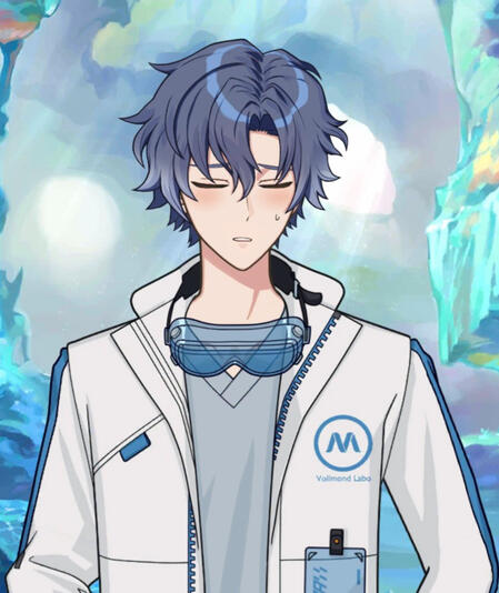 He has muted blue hair with a light blue gradient at the tips. Neptune’s eyes are unusual as his iris is mainly light grey with a bright green diamond acting like his pupil. His attire is quite simplistic, other than wearing a dark navy turtle neck, he also wears a doctor’s coat without a stethoscope. In the other chance, he looks wore casual clothes or semi formal clothes.